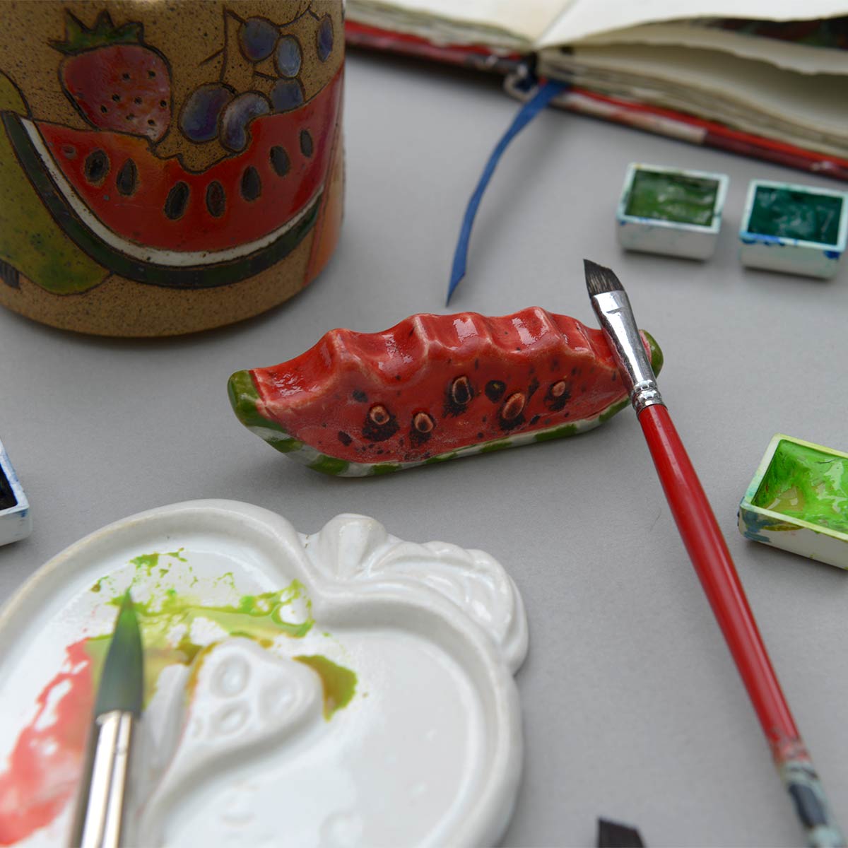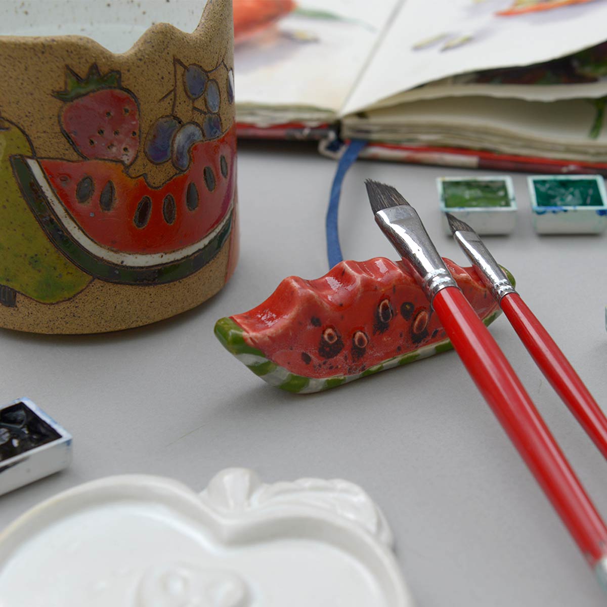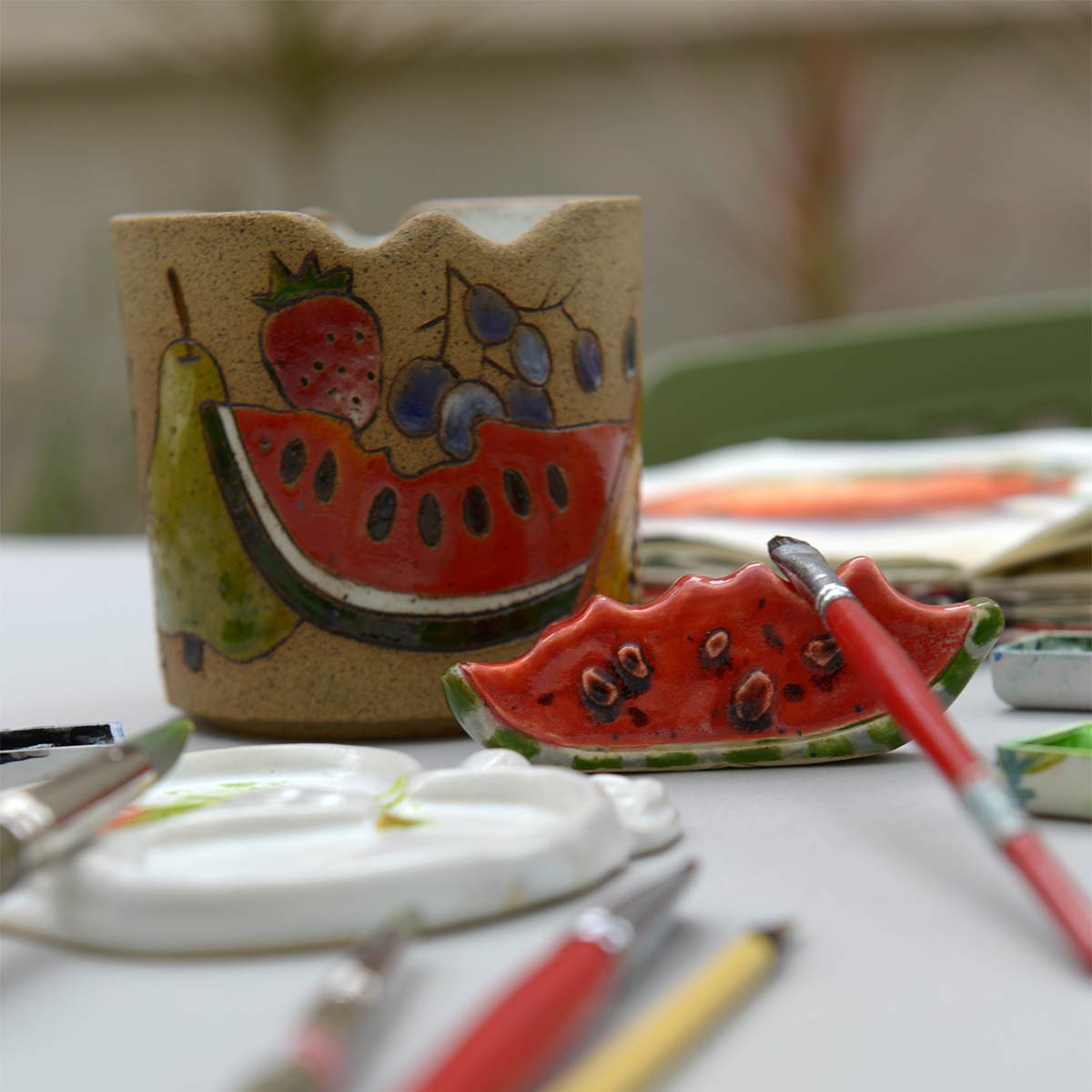Peças 100% artesanais: modeladas, pintadas e esmaltadas à mão.