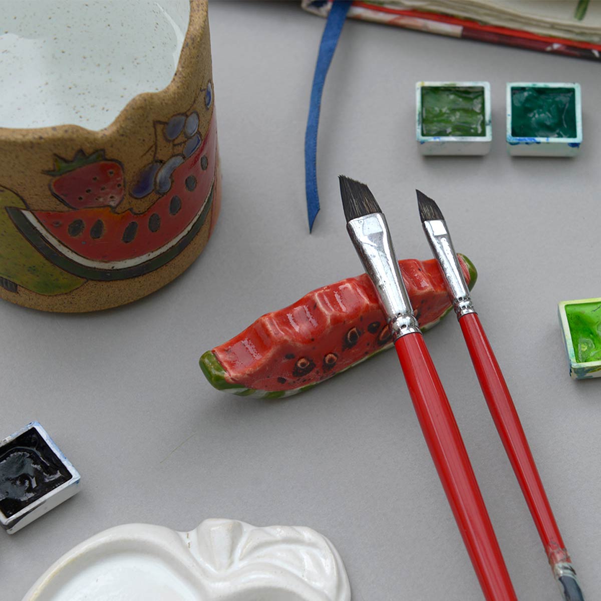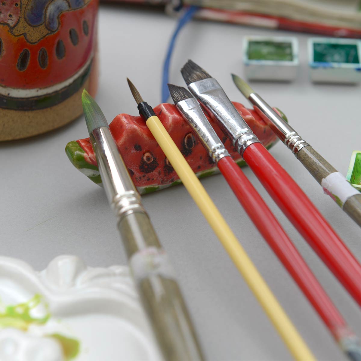 esmaltada a mão, serve para 4-5 pincéis.