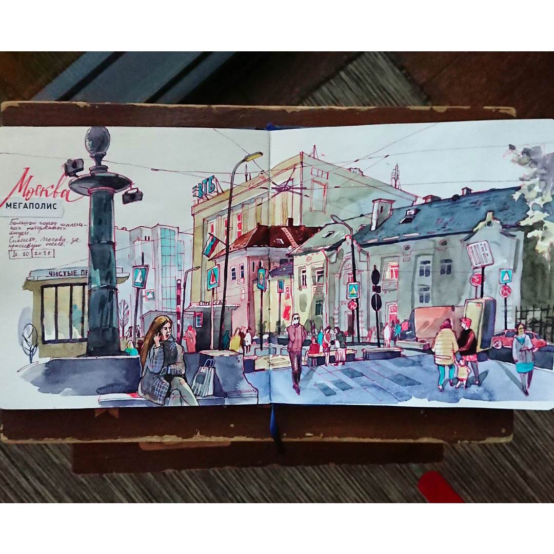 Vamos mostrar várias técnicas mais apropriadas para uso durante uma viagem, falamos como organizar melhor seus materiais de arte para uma viagem. Para cumprir as tarefas sugerimos a técnica de caneta nanquim e aquarela.